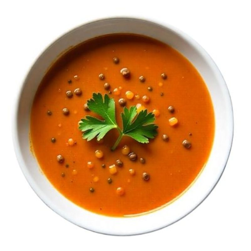 Täglich frische Linsensuppe mit Brot und Zitrone