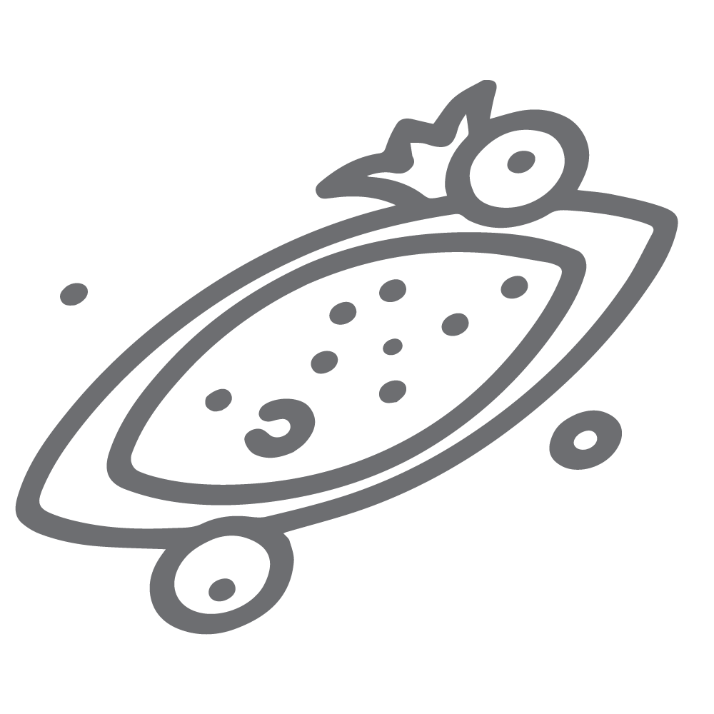 Unsere Pizzen sind min. 30cm groß Alle unsere Pizzen sind mit Tomatensoße und Mozzarella belegt.